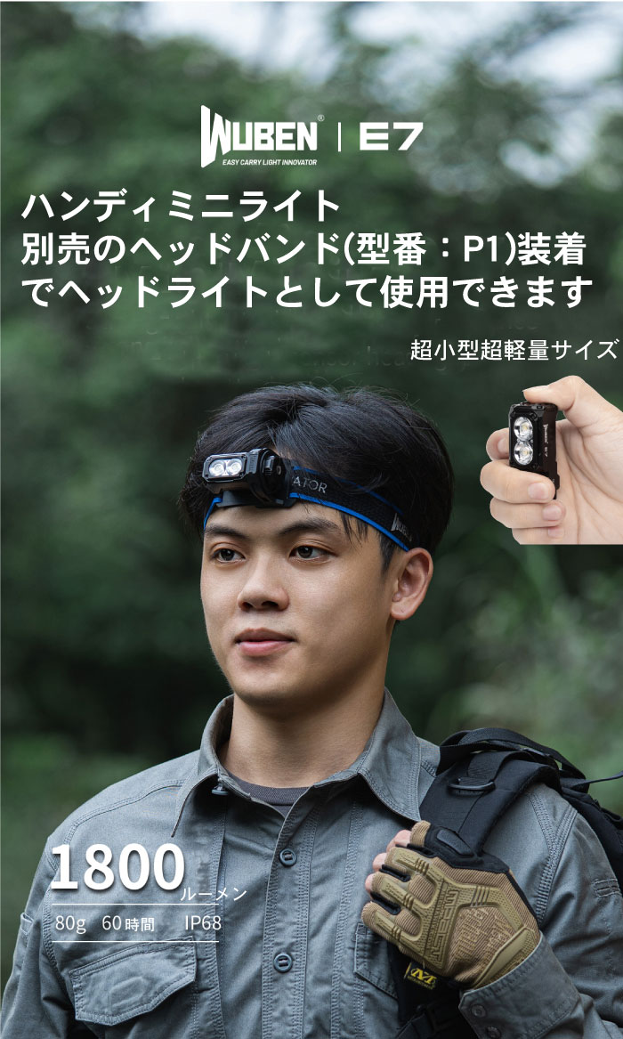 セット販売WUBEN【E7-GR[グリーン]】+【ヘッドバンド】 ヘッドライト、ハンディライト兼用 超小型軽量 LED懐中電灯 ledフラッシュライト 明るさ最大1800ルーメン[TYPE-C充電] ツイートする シェアする 販売価格 7,100円(税込み) 会員価格 (税込み) 通常価格 (税込み) 在庫 5 商品コード E7-GR-P1 JANコード 数量 - + カートに入れる カテゴリー Eシリーズ